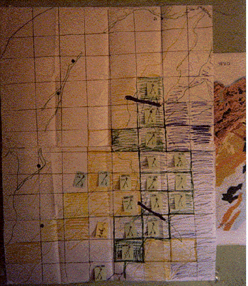 Fig. 5. Illustration of map for Ngnith Village, Senegal, used in a role game. Each month, the player comes and places a mark on the map to reflect his position on the spatial grid.