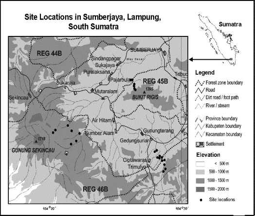 Fig. 1. Site locations in Sumberjaya, Lampung Province, South Sumatra.